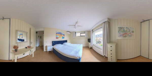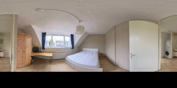 Slaapkamer 1 (ca. 16 m²), gelegen aan de achterzijde, beschikt over een vaste inbouwkast en airco.