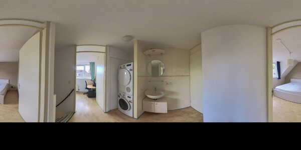 Op de overloop vindt u de aansluitingen voor wasmachine en droger, een vaste wastafel, en een praktische kast met veel bergruimte en de opstelplaats voor de CV-ketel, de mechanische ventilatie en de omvormer van de zonnepanelen. Hier bevindt zich ook een tweede toilet (hangend model, Sanibroyeur).