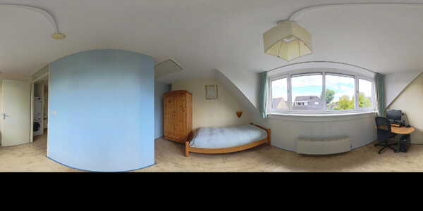 Slaapkamer 4 (ca. 15 m²) aan de achterzijde, met kunststof dakkapel, elektrisch screen en toegang tot de vliering.