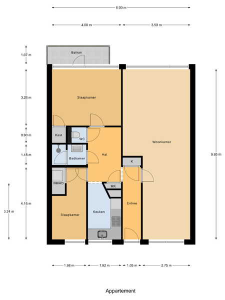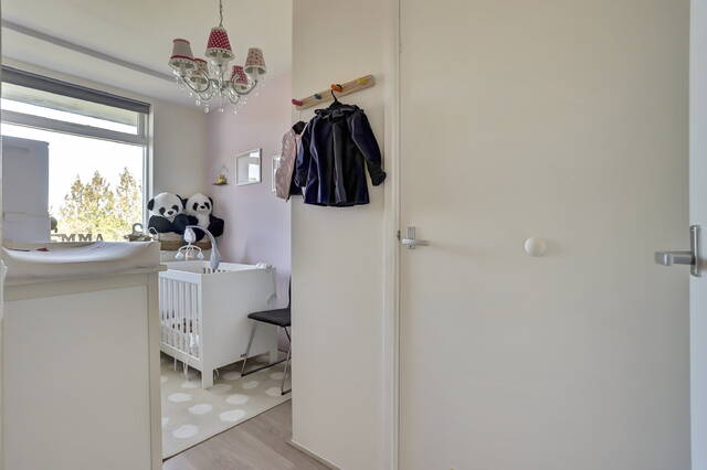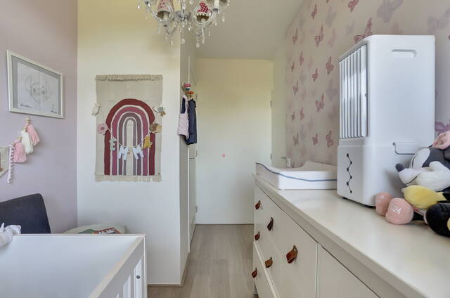 Vanuit de hal heb je toegang tot de twee slaapkamers, het toilet en de badkamer. De hoofdslaapkamer bevindt zich aan de rustige achterzijde en heeft een royale oppervlakte van ca. 12 m². Vanuit hier loop je via een deur zo het zonnige balkon op het westen op, waar je na een lange dag heerlijk kunt ontspannen in de avondzon. De tweede slaapkamer aan de voorzijde is ca. 8 m² groot en beschikt over een handige inbouwkast waar de wasmachine en warmwaterboiler zijn opgesteld. Beide kamers zijn perfect in te delen als slaapkamer, kinderkamer, werkkamer of hobbyruimte.