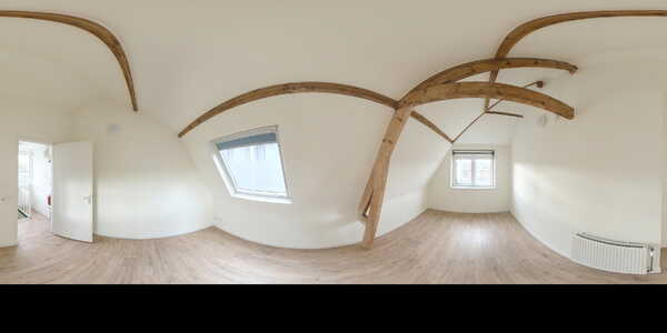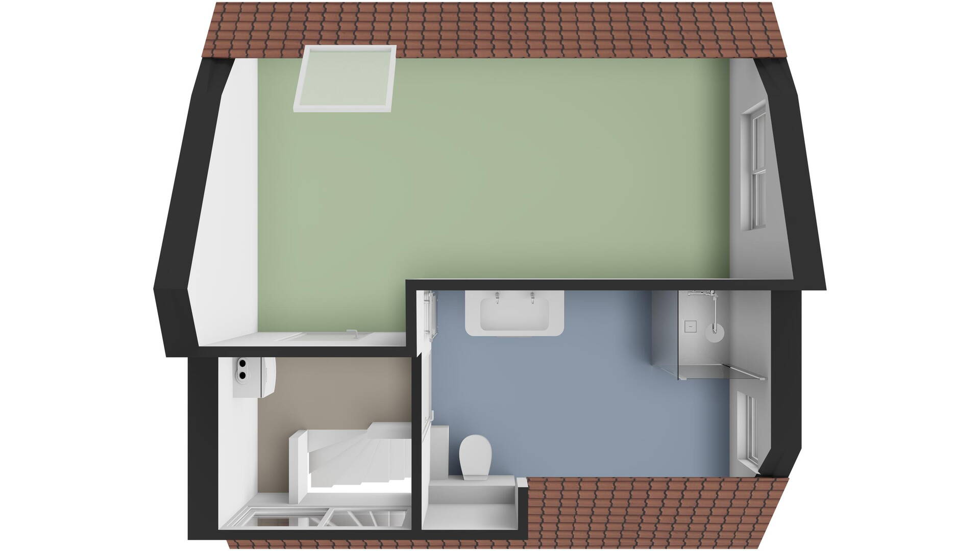 Via de trap bereik je de vierde verdieping, waar je beschikt over de voorste helft van de etage. Hier tref je een toffe, lichte slaapkamer met ruimte voor een groot tweepersoonsbed en voldoende plaats voor kledingkasten.