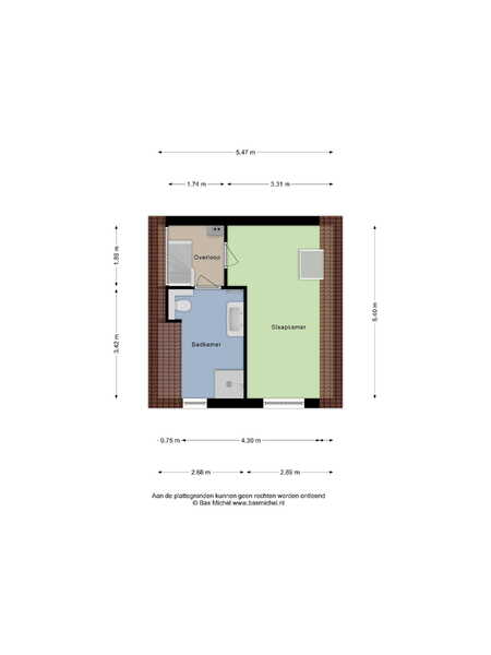 Aan de voorzijde bevindt zich een kleinere kamer, voorzien van aansluitingen voor de wasmachine en droger.