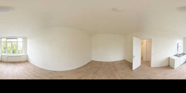 Achter de voordeur leidt de trap naar de derde etage, waar je aankomt in de hal die toegang geeft tot iedere ruimte op deze verdieping. Deze verdieping bestaat uit een riante voorkamer van ca. 23 m² en een grote achterkamer van ca. 19 m². Dit appartement is voorheen verhuurd geweest, waarbij er drie ruime kamers waren met een eigen keuken. De keukens zijn blijven zitten; je zou hier dus ook perfect met z’n drieën kunnen wonen, waarbij je het toilet en de badkamer deelt, maar ieder een eigen keukenblokje hebt en daarnaast een gezamenlijke keuken. Uiteraard kunnen de keukenblokjes er ook eenvoudig uit, zodat je het appartement als geheel kunt bewonen — alleen, met z’n tweeën of met je gezin.