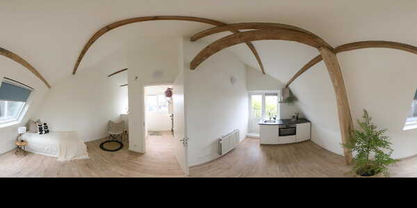 badkamermeubel. Het hoge plafond maakt dit tot een bijzonder sfeervolle ruimte!