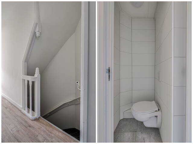 Deze heerlijk lichte en ruime bovenwoning is verdeeld over de derde en halve vierde etage. Samen met B02 deel je dezelfde voordeur, en op de tweede etage heb je je eigen entree.