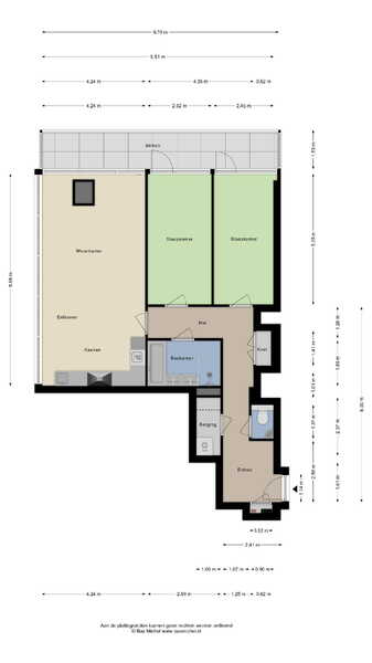 Balkon (ca. 16 m²) is gelegen aan de achterzijde van het complex, op het . Dit balkon is bereikbaar via de woonkamer en de slaapkamers.