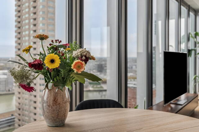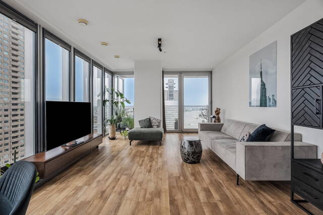 Exclusief 3-kamer hoekappartement met berging en de Maas aan je voeten en een spectaculair uitzicht over de skyline van Rotterdam. Wonen op de 22e verdieping betekent elke dag beginnen en eindigen met een adembenemend uitzicht vanuit de royale living. Grote raampartijen zorgen voor een overvloed aan natuurlijk licht en een ruimtelijk gevoel. De moderne open keuken is volledig uitgerust met hoogwaardige inbouwapparatuur en een elegant afwerkingsniveau. De slaapkamers bieden rust en privacy, terwijl de luxe badkamer is ingericht met exclusieve materialen en stijlvol design.
