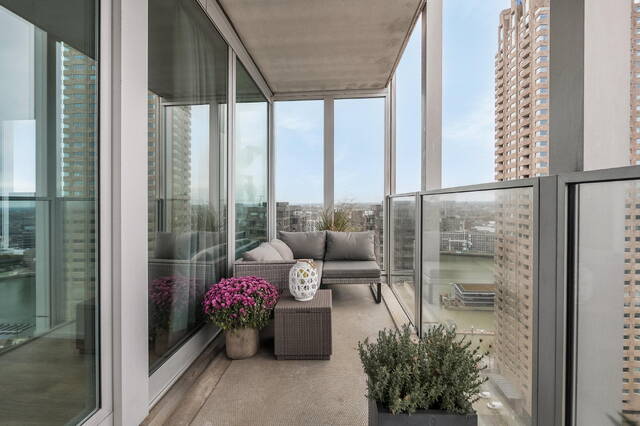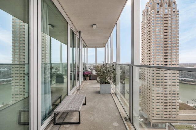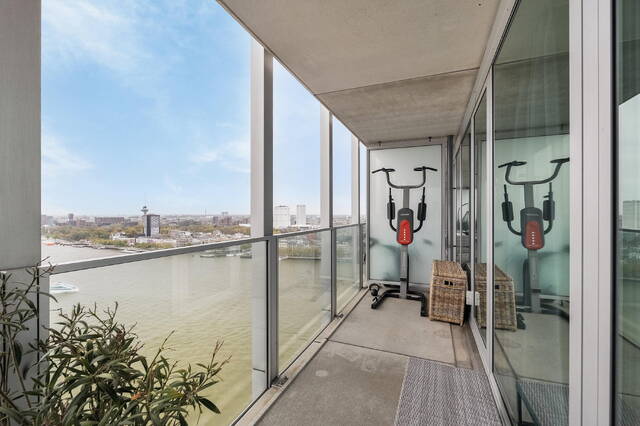 - Royaal balkon met adembenemend uitzicht op de skyline van Rotterdam;