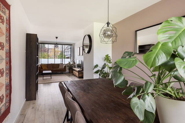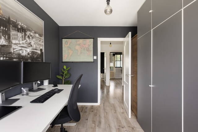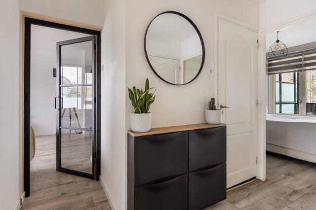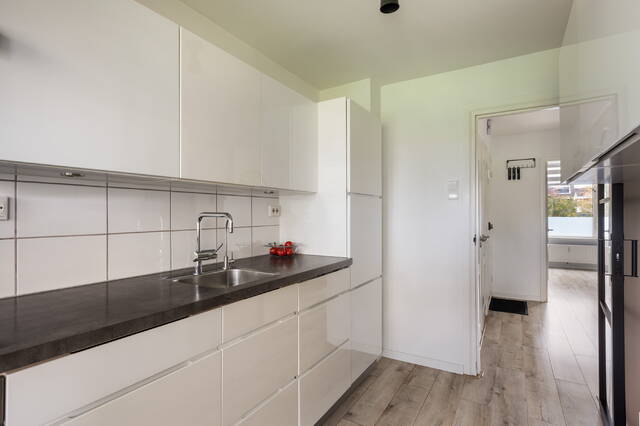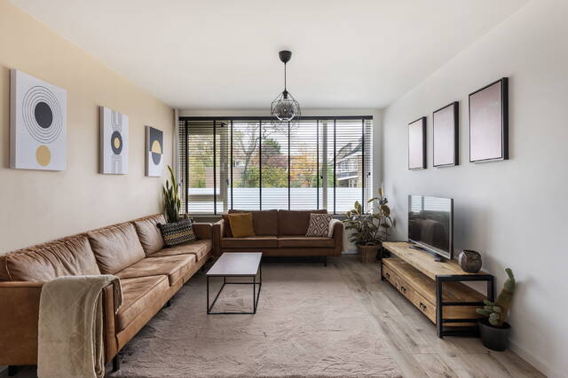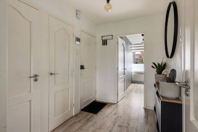 Binnen treft u een lichte en doorgebroken woonkamer met grote raampartijen aan zowel de voor- als achterzijde, waardoor het daglicht vrij spel heeft. Er zijn twee ruime slaapkamers, waarvan één aan de voorzijde en één aan de achterzijde. Laatstgenoemde biedt net als de keuken toegang tot het balkon.