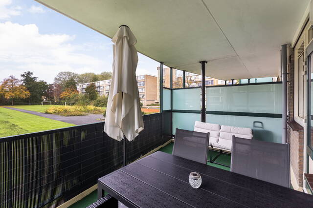 Het mooie appartement bevindt zich op de eerste verdieping, wat betekent dat u slechts een paar traptreden hoeft te nemen voordat u thuis bent. Aan de achterzijde ligt een heerlijk ruim balkon van ca. 13 m², met uitzicht op een groenstrook en een speelplaats (zuidwesten). Een fijne, rustige plek om te ontspannen in de buitenlucht.