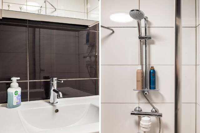 De badkamer is geheel betegeld en uitgerust met een douchecabine en een wastafelmeubel. Ook beschikt het appartement over een eigen grote berging in de onderbouw.