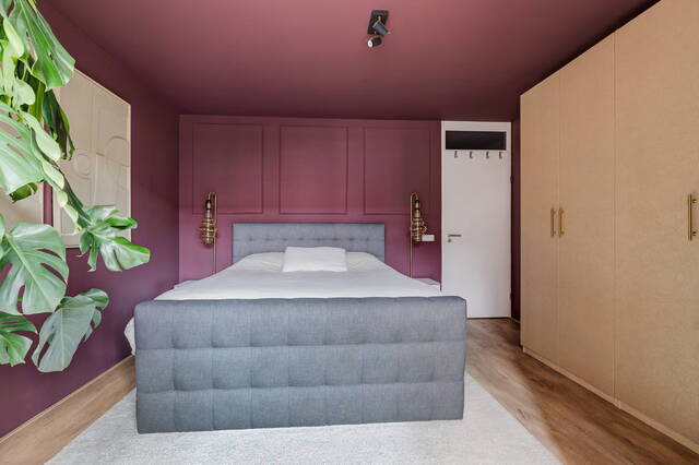 Slaapkamer: Aan de achterzijde ligt de royale en zeer stijlvol afgewerkte slaapkamer met directe toegang tot het balkon op het westen – een heerlijke plek om na het werk te ontspannen met de zon op je gezicht. De ligging is bovendien beschut, wat zorgt voor rust en privacy.