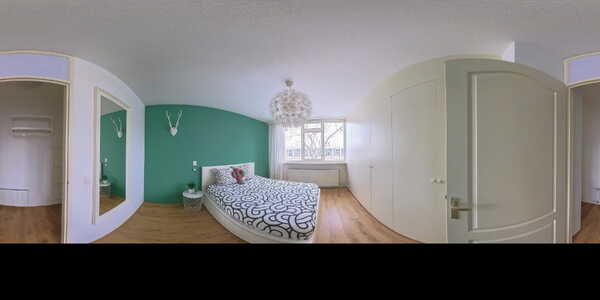 De tweede slaapkamer beschikt over ramen aan twee zijden, wat zorgt voor veel licht en een ruimtelijk gevoel.
