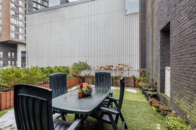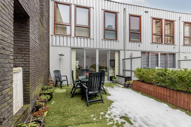 Het terras, gelegen op het zuidoosten, is een heerlijke plek om van de zon te genieten. Het terras is afgewerkt met kunstgras en omgeven door plantenbakken, wat zorgt voor een groene en ontspannen sfeer.