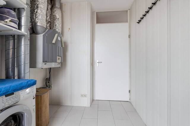 Daarnaast is er een grote wasruimte met aansluitingen voor wasmachine en droger en de opstelling van de WTW-installatie, wat zorgt voor extra comfort en ventilatie.