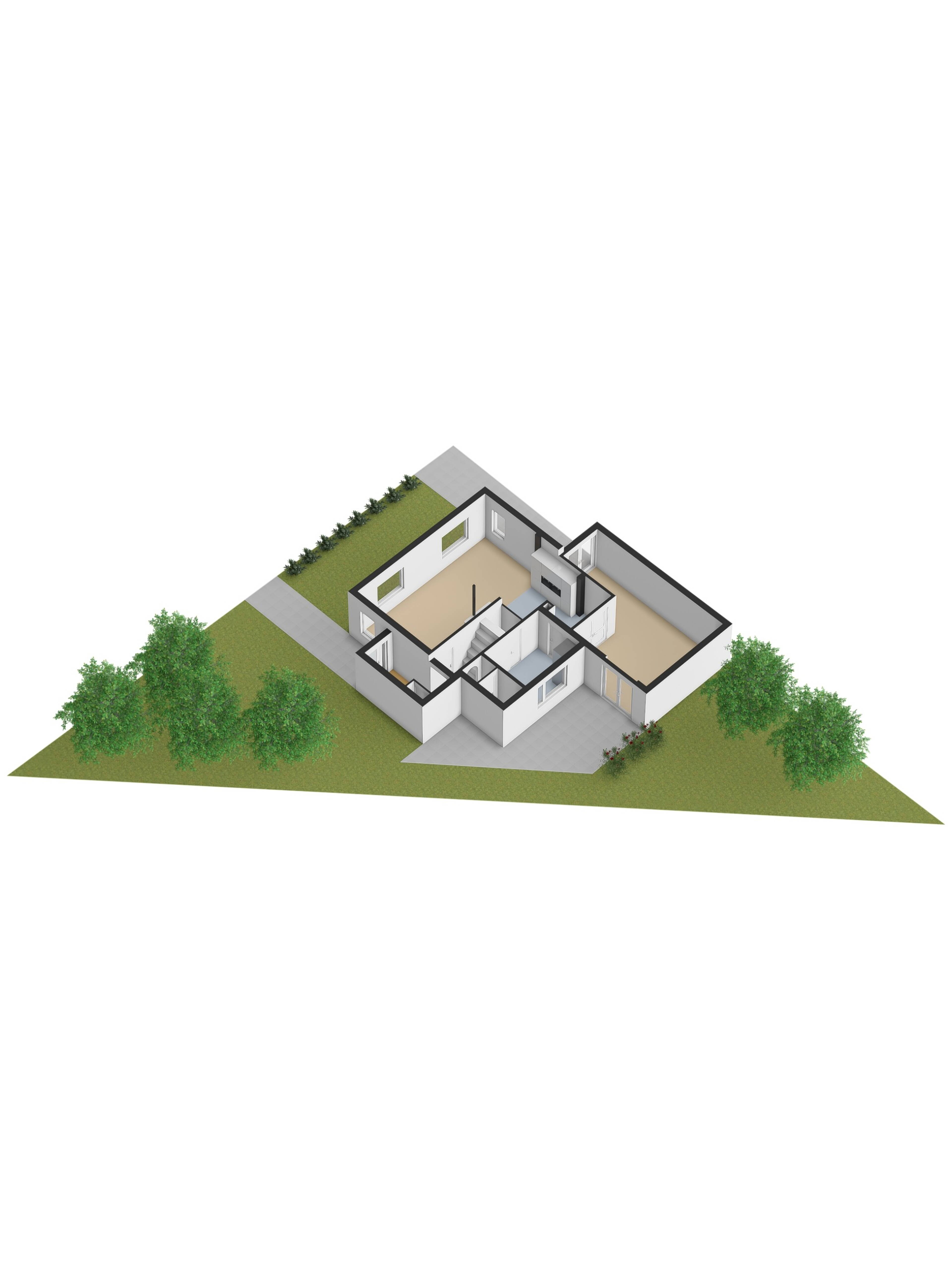 Achterin de tuin bevindt zich een gedeelte met, dat nog geheel naar eigen wens kan worden ingericht. Hier is ruimte om bijvoorbeeld groen, beplanting of een extra zitplek te realiseren, waardoor de tuin eenvoudig kan worden aangepast aan persoonlijke woonwensen.