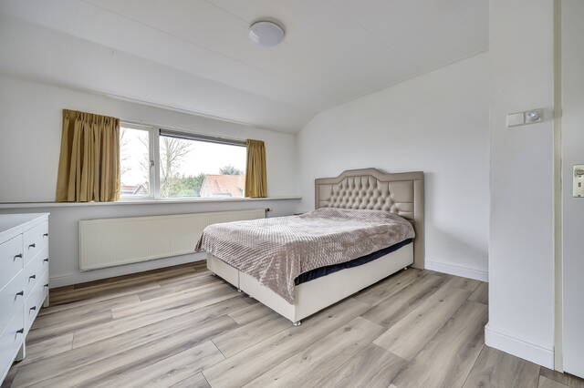 De tweede slaapkamer aan de voorzijde is eveneens goed van formaat en biedt toegang tot de zolder, die bereikbaar is via een vlizotrap. Deze extra ruimte zorgt voor praktische bergruimte en draagt bij aan het functionele karakter van de woning. Tevens is deze tweede slaapkamer voorzien van nieuwe airconditioning.