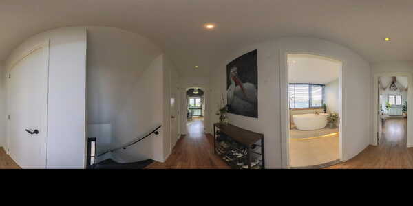 De tweede badkamer is een luxe oase met een verhoogd vrijstaand ligbad (met indirecte verlichting aan de onderzijde), inloopdouche, hangend toilet en dubbel wastafelmeubel met verlichte spiegel. De ruimte beschikt over dimbare inbouwspots en een dakkapel die extra licht en ruimte biedt.