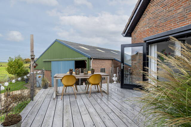 De woning is gelegen op een perceel van maar liefst 2.182 m² met een uniek vrij uitzicht over de polder. Aan de achterzijde bevindt zich de voormalige koeienstal met authentieke details, thans in gebruik als paardenstal en opslagruimte.