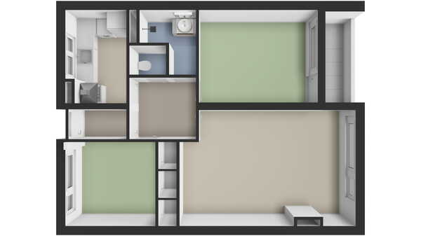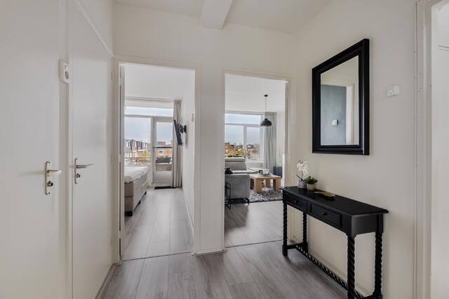 Lichte woonkamer (ca. 22 m2) gelegen aan de voorzijde van het complex en voorzien van een laminaatvloer. De grote raampartij zorgt voor volop aangenaam daglicht. De woonkamer biedt verder voldoende ruimte om een eethoek te creëren. Door middel van een balkondeur met schuifhor heeft u toegang tot het balkon.