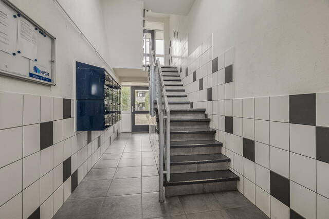 Entree met bellentableau, brievenbussen, centrale hal met trappenhuis. Toegang tot de inpandige berging.